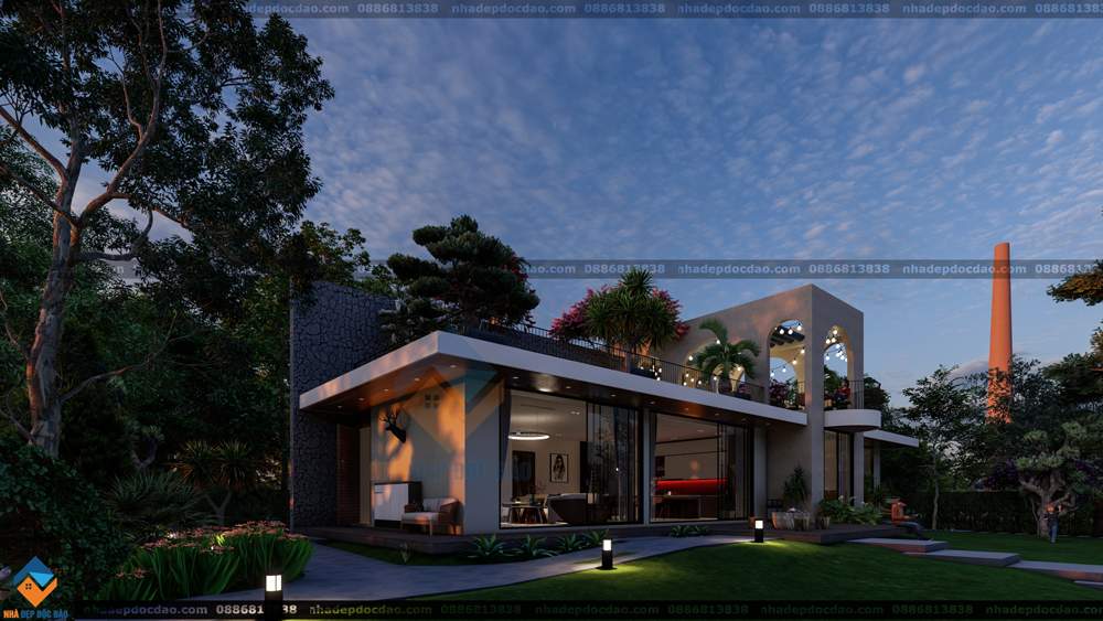 Mẫu thiết kế biệt thự nghỉ dưỡng hiện đại - Công trình lúc về đêm