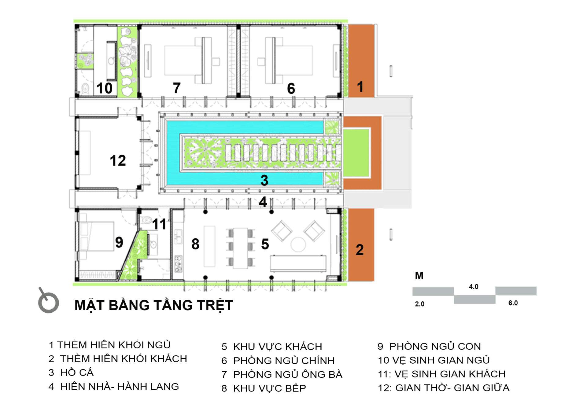Mẫu thiết kế biệt thự nhà vườn - Tổ chức cây xanh, mặt nước giữa công trình nhằm đón gió,đối lưu không khí, và hạn chế bức xạ nhiệt vào mùa hè