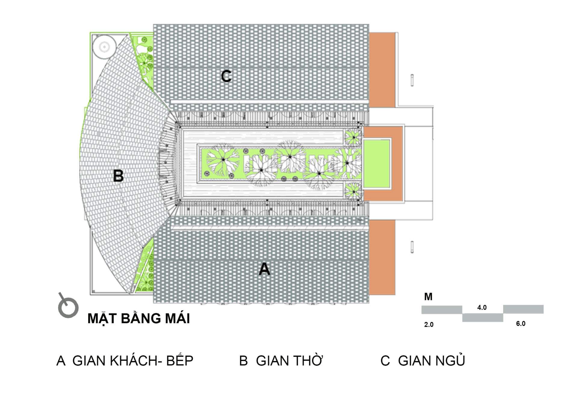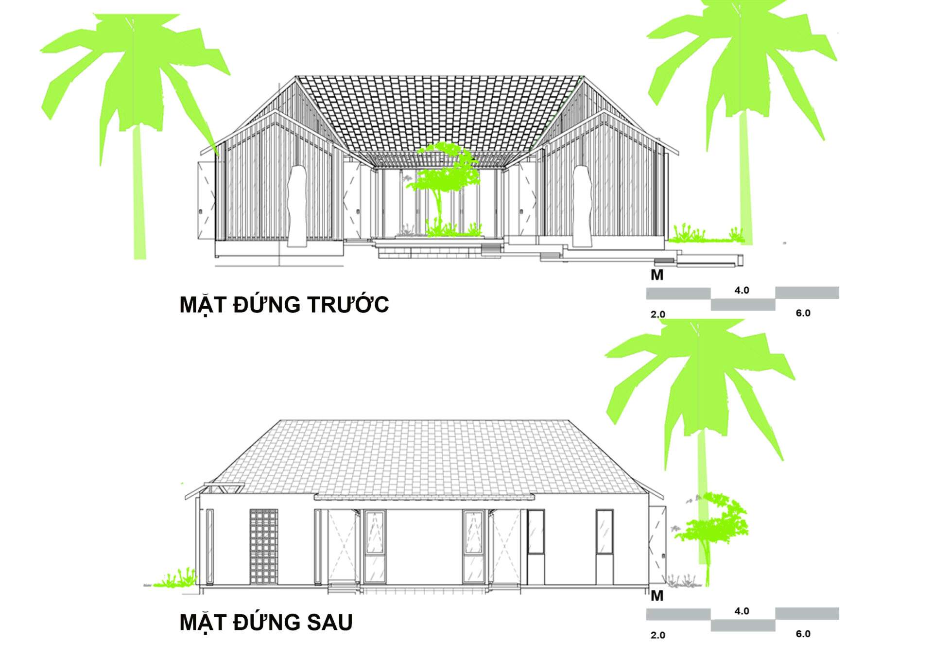 Mẫu thiết kế biệt thự nhà vườn - Công trình sử dụng mái dốc mỗi gian hai mái quen thuộc vùng quê