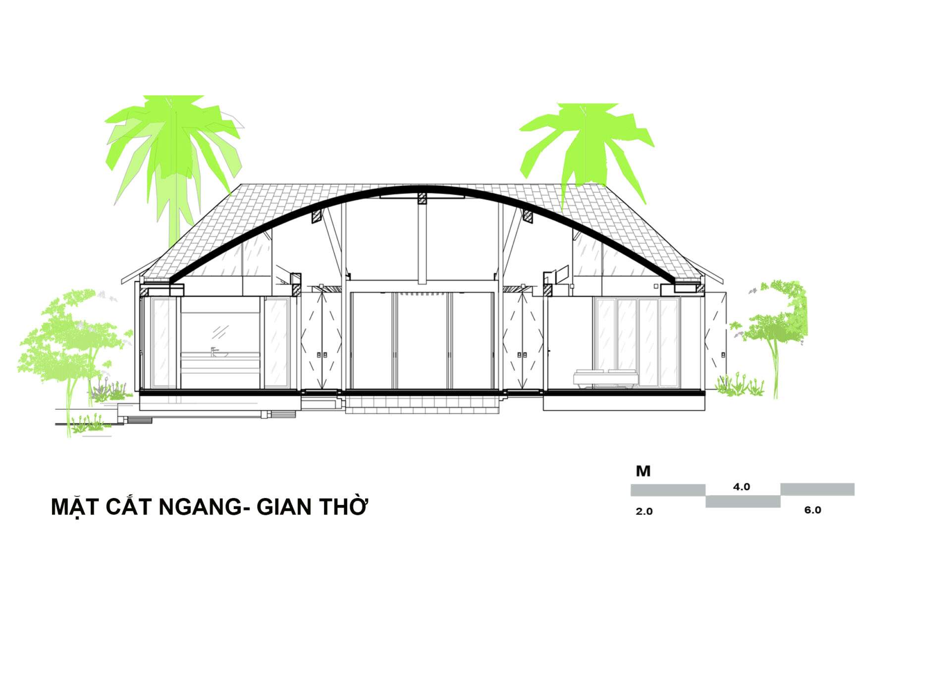 Công trình lấy ý tưởng từ nhà ở 3 gian truyền thống. Qua dự án, đội ngũ KTS muốn giao hòa văn hóa kiến trúc bản địa và kiến trúc hiện đại, muốn lưu giữ những giá trị của những ngôi nhà ở nông thôn 3 gian vùng quê Quảng Nam nói riêng và miền Trung nói chung.